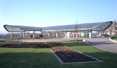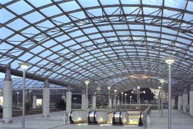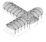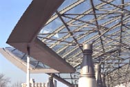 Stahl-Glas-Konstruktion, zwei Tonnenschalen mit